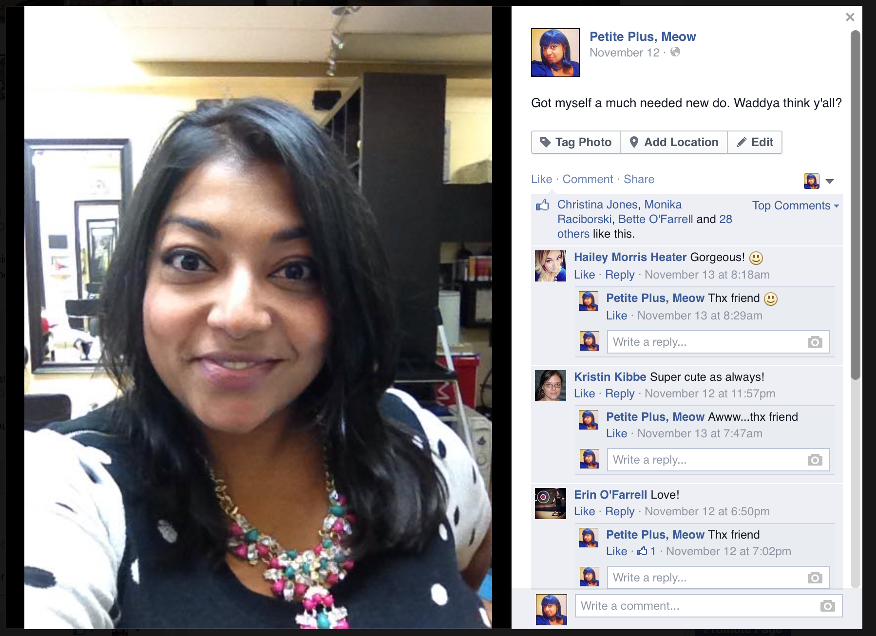 Although not plus-sized, this fashionable petite babe Tammy, totally did it right for a casual sophisticated Sunday Brunch vibe in her Meow! tee. Don’t you think? Bravo Tammy… “me f*uckin’ ow” indeed! 😉