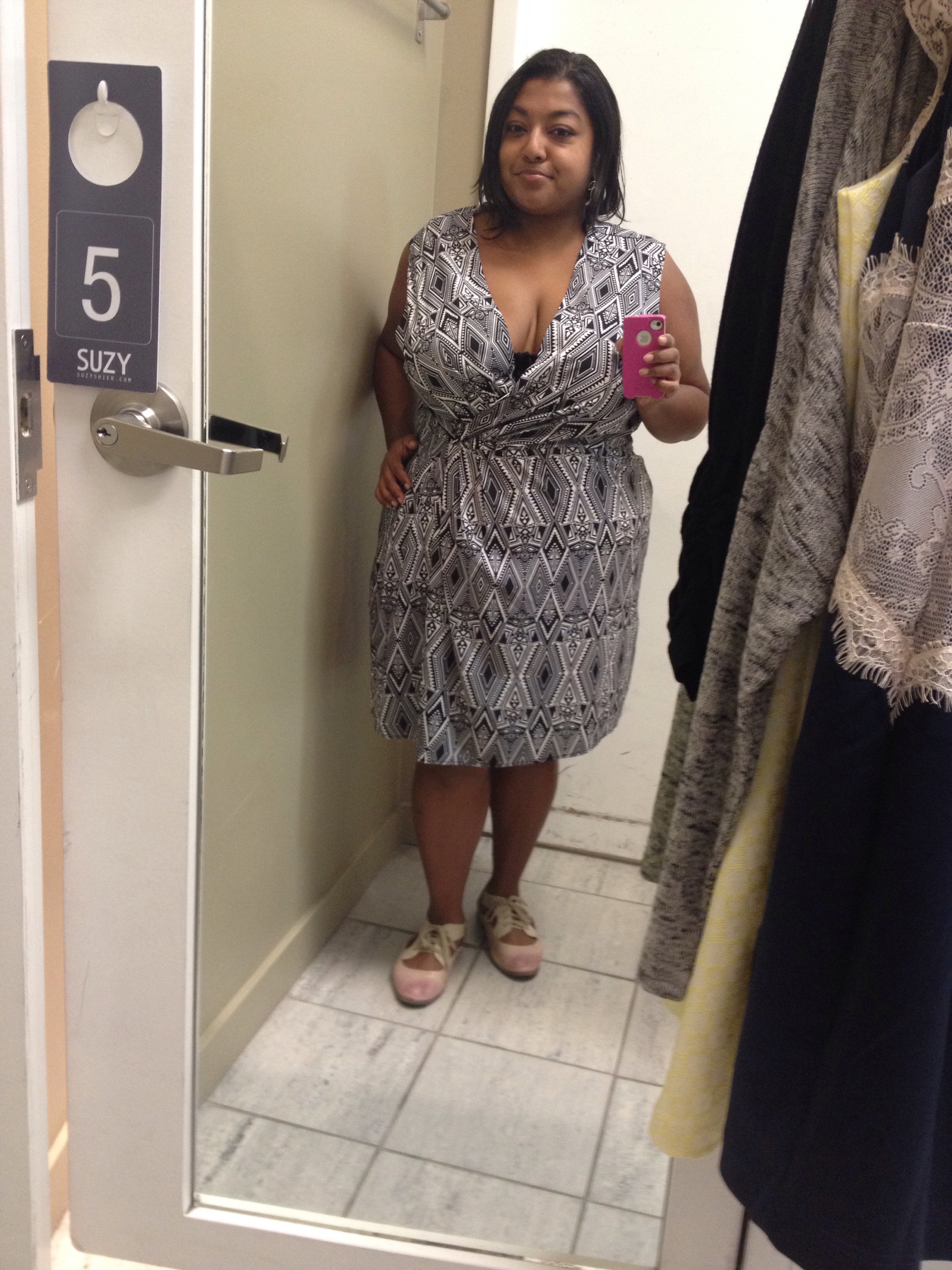 On my way out, I did find a size 2x in the faux wrap aztec printed dress. But the thought of having to go back into those cramped change-rooms AGAIN…. ew. No Thanks.