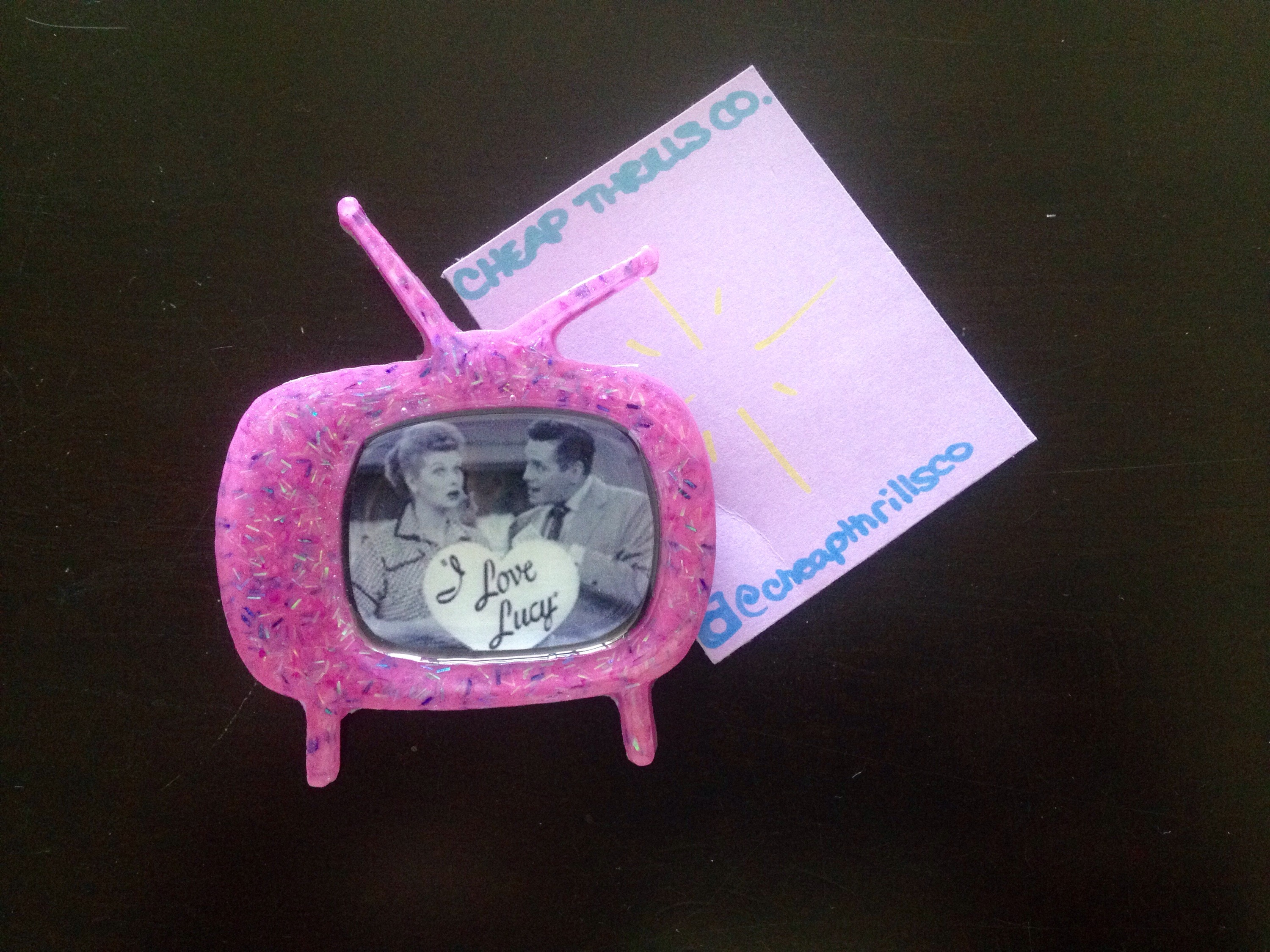 This adorable brooch I picked up from Cheap Thrills. I DO Love Lucy! I do! I do!!! Click here to see what I mean.