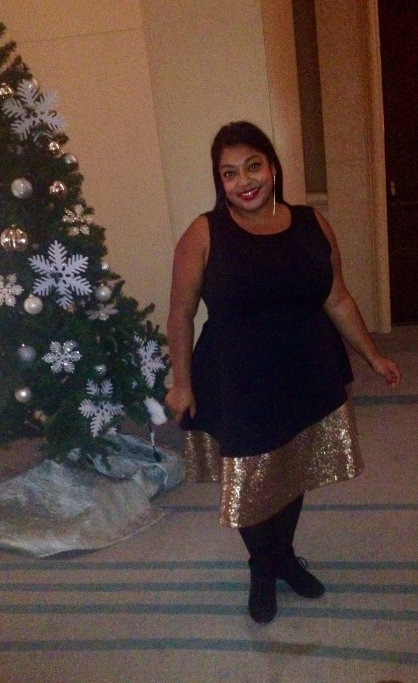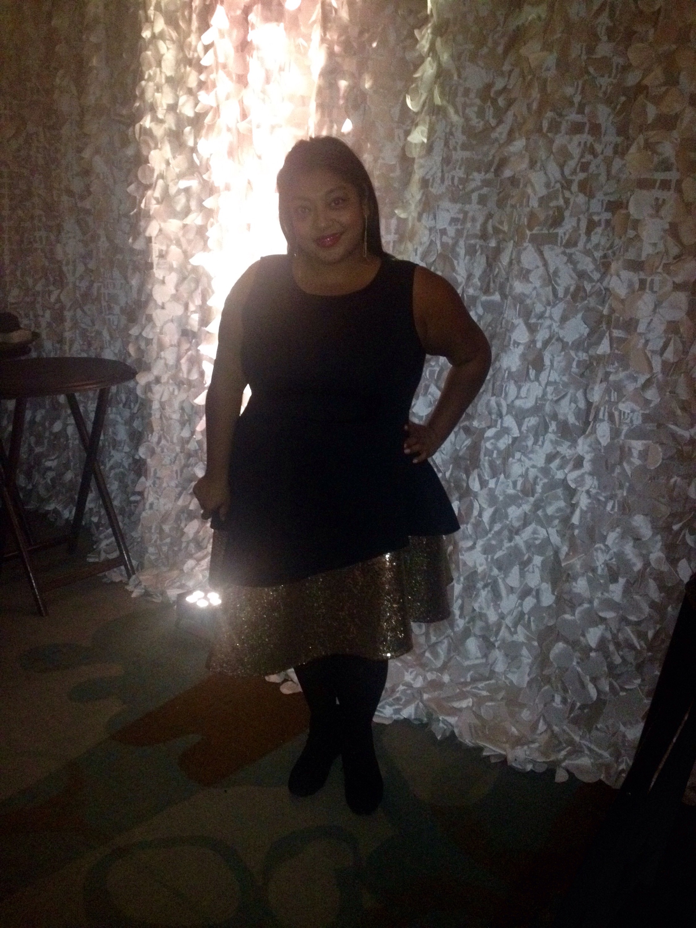 Yah…well that was exactly what happened when I met the Sequin Bonded Pique Dress by Eloquii. So, I put my name on their waiting list …. And then one fateful day, it arrived at my door. Wheeee!!