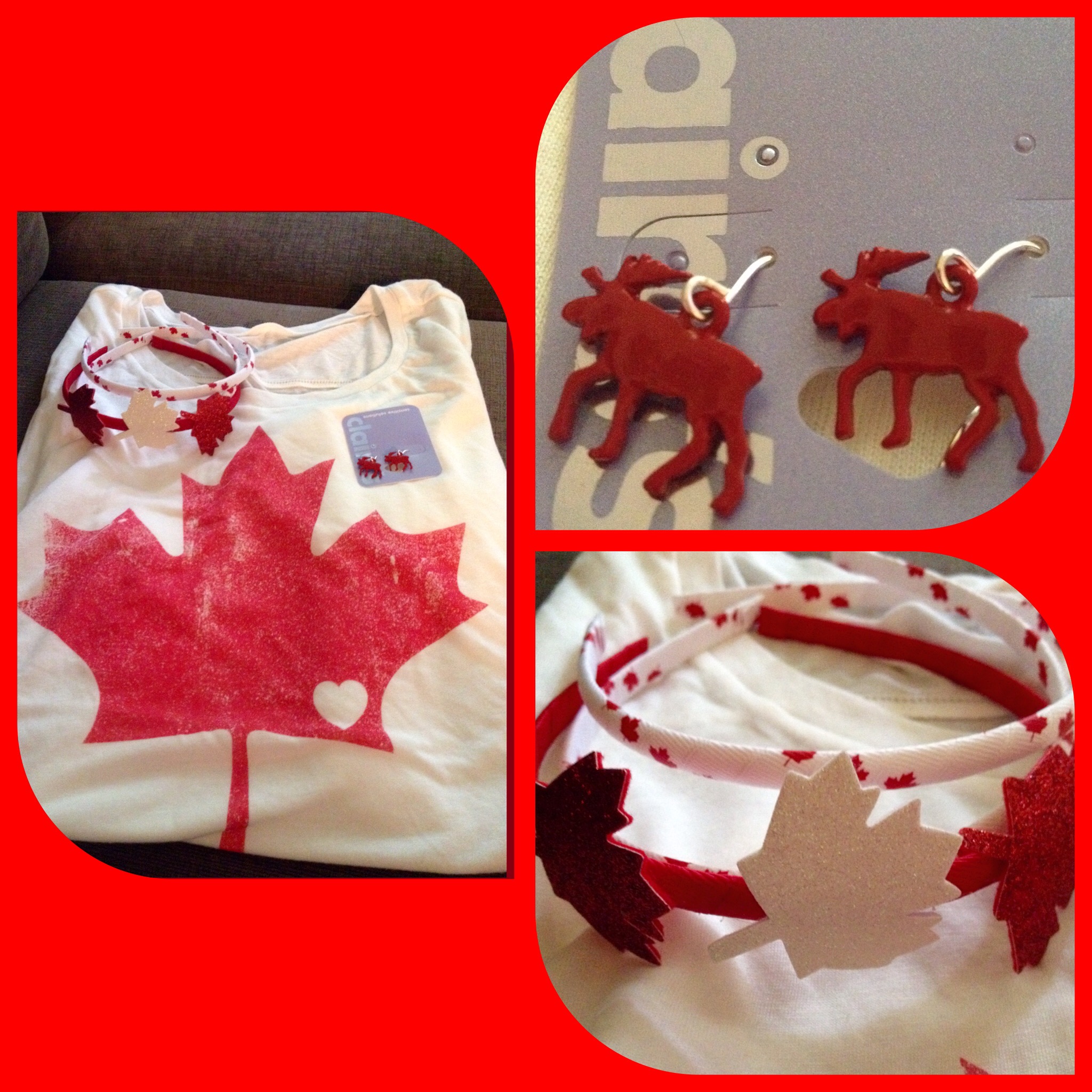 Outfit deets: T-shirt, Old Navy; Headbands and Moose Earrings, Ardene