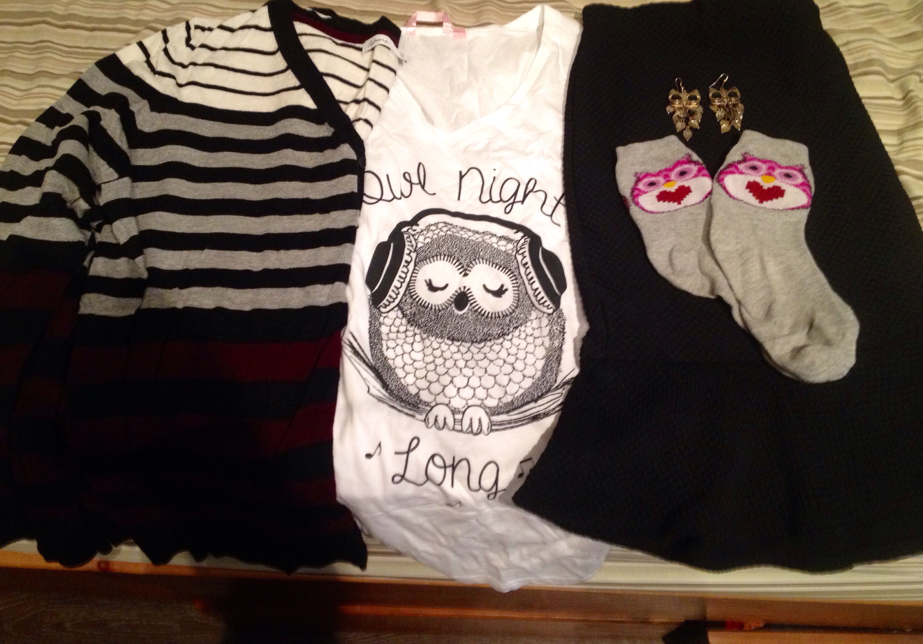 I rounded up all the pieces I had with OWLS on it…complete with tee, socks and earrings.