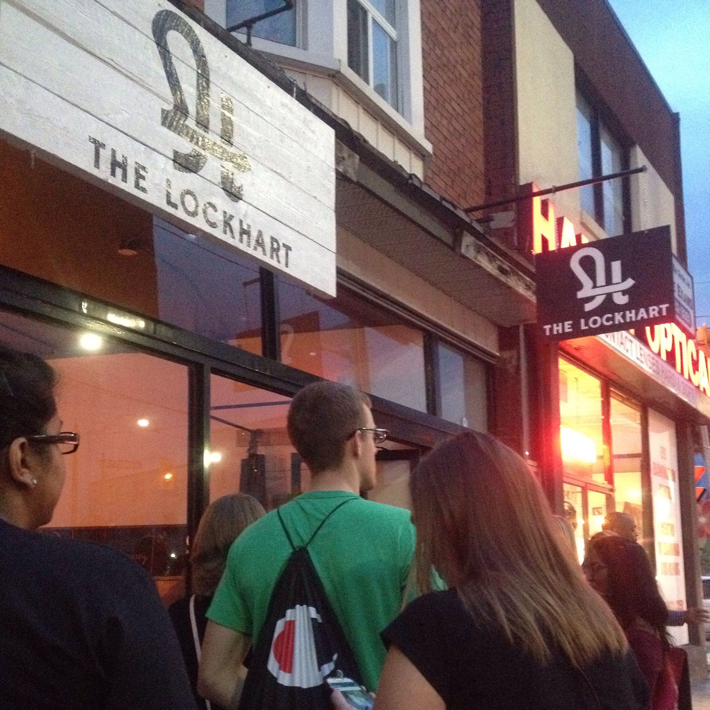After AN HOUR standing in this line…this was as close to The Lockhart we could get. We decided to quit waiting as soon as a few of us felt rain drops on our heads.