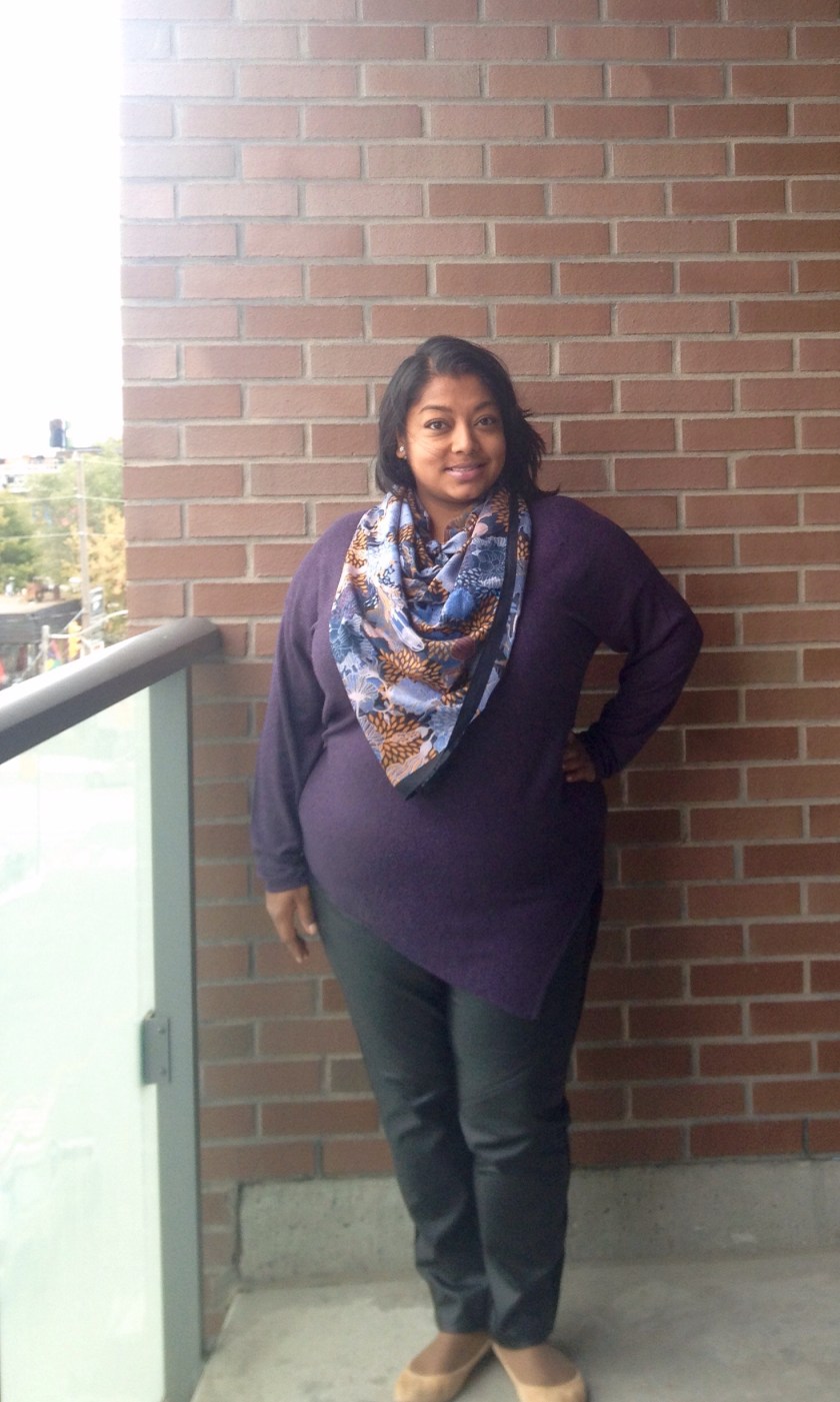 Mirabelle Dress, Tatyana Boutique; Glossy Beige Pumps, Payless Shoes; Fur Collared Sweater, Reitmans