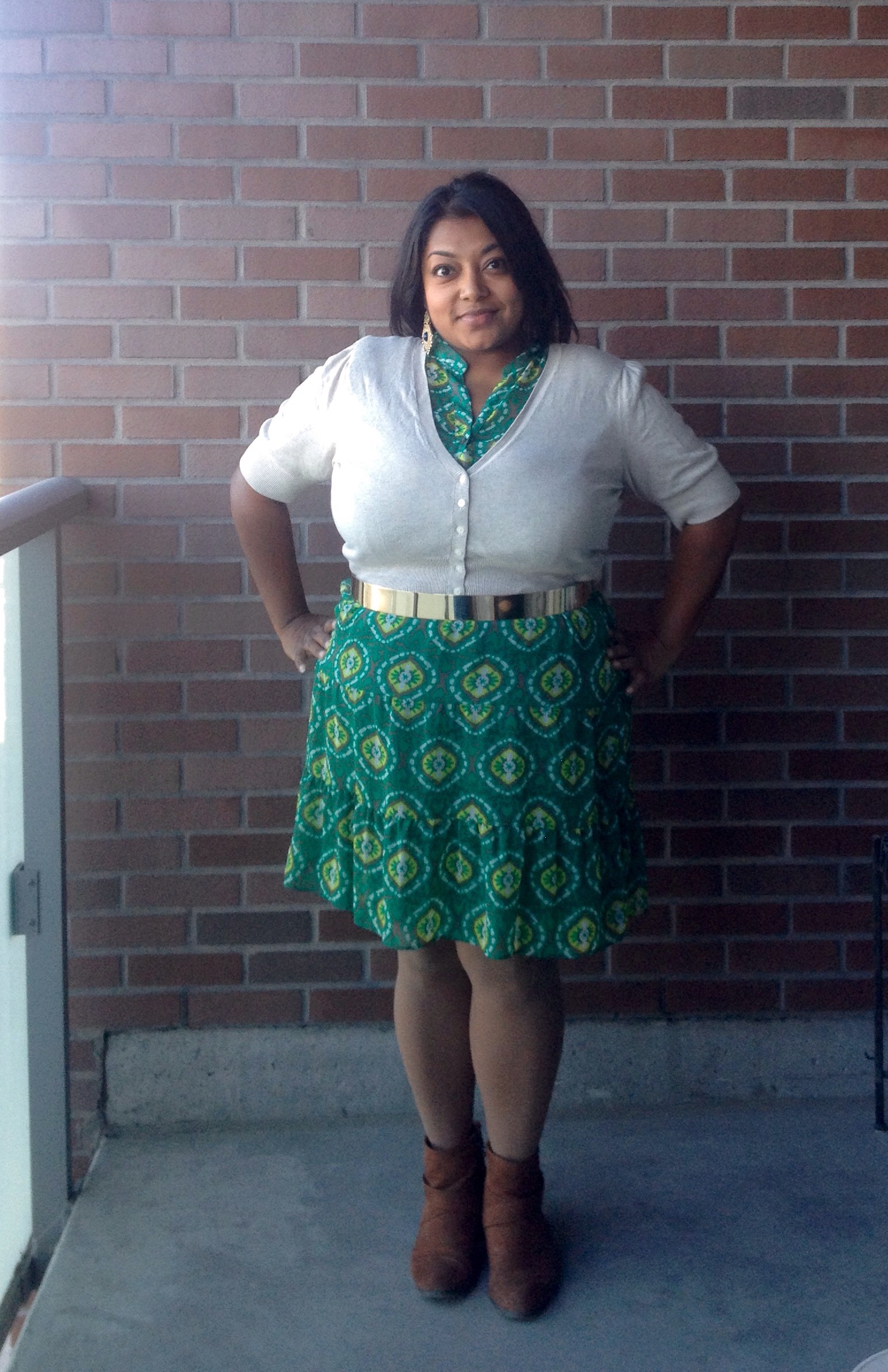 Diamond print jacquard skater dress — I’m wearing 2x – $30Overall, I was a bit disappointed – especially because the shopgirl assured me that the plus sizes would be the same prints and styles shown in their regular line.