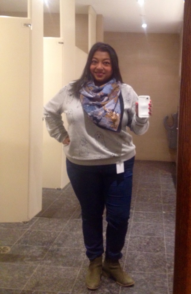 How I Got the Look: Sweater & Jeans, F21+, Scarf, H&M; Boots, Payless, Earrings, MyBeadedDesigns