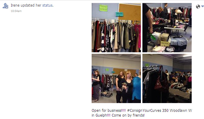 Then later that year I attended an event called Consign Your Curves, similar idea where 22 plus size fashionistas, including blogger/model Karyn aka KillerKurves and fashion designer Jessica Biffi rented clothing racks in a warehouse to sell their gently used or never been worn plus size clothing. This time I could actually participate and sell my items! This was a huge undertaking as I ended up pricing, tagging and carting 6 containers full of fab barely worn clothes for an entire afternoon resulting in a total sales of upwards of $200! Pretty damn good return on a Saturday spent in Guelph…considering these clothes were going to new homes to be loved, rather than just sitting taking up space in my storage unit.
