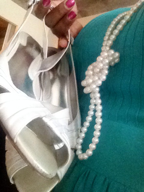 I picked up this teal dress from a Plus Size Consignment Sale I participated in last year — its an ASOS dress — and this is the first time I’ve ever worn it. The long strand pearls were picked up from the Toronto Vintage Clothing Show a earlier this year and shoes (from Naturalizer) and tiara were from my wedding. Thrilled to finally have an excuse to wear this prettiness out again!