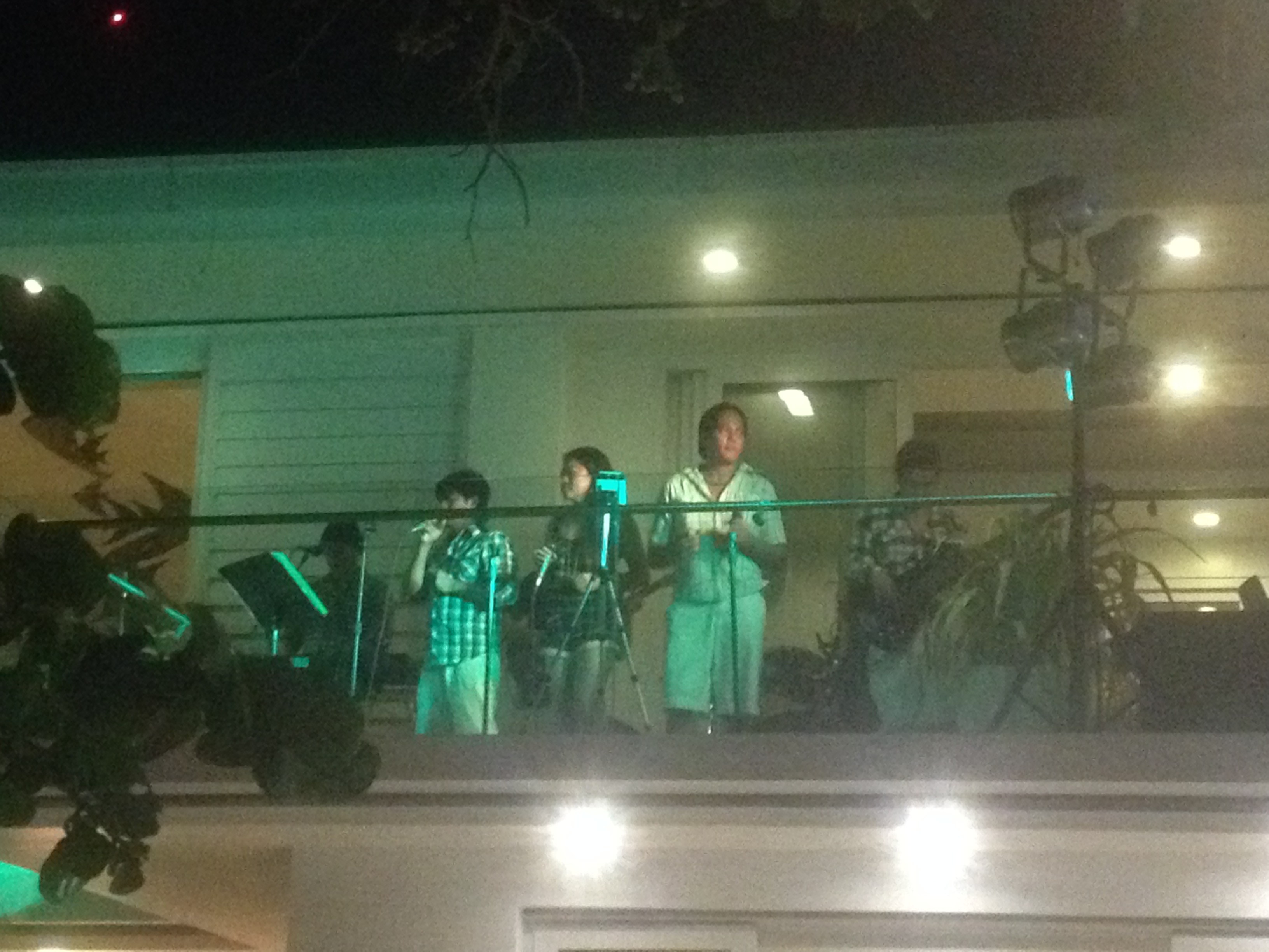 Fire-Dancers!!!Roof-top cover band performing along the white sand beach