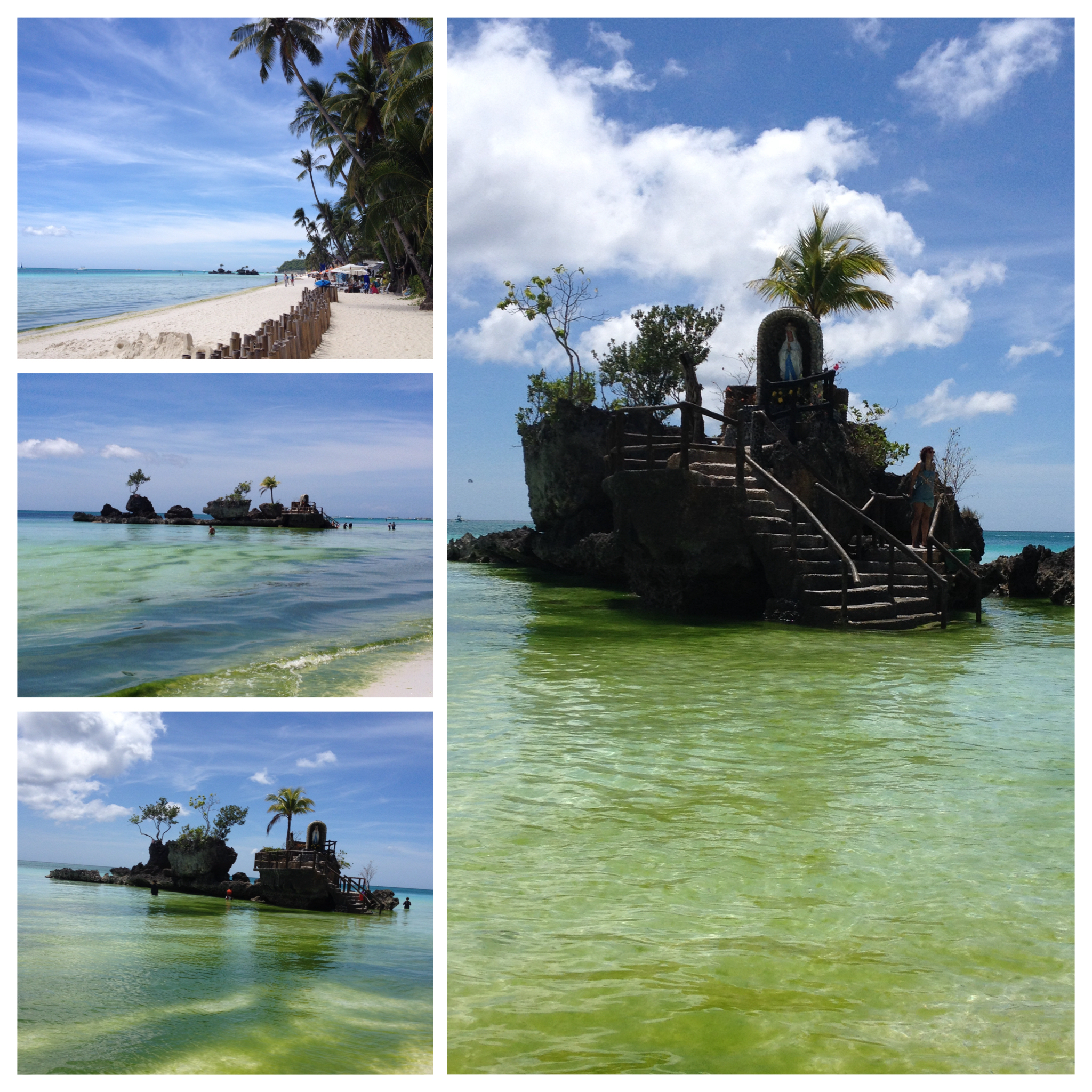 Willy’s Rock …. at Stn1 of Boracay White Sand Beach. My gf/travel mate ventured onto the rock. 🙂