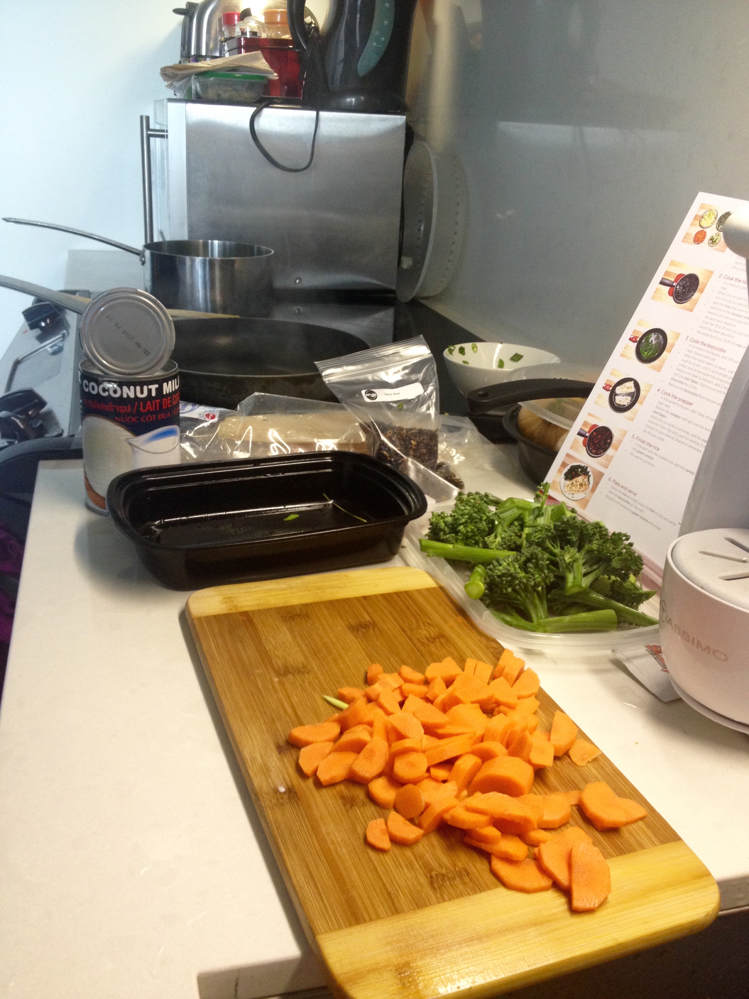 Now this meal was a bit more difficult than the first. It required both oven and stove, and my slap-chop for chopping up the nuts.