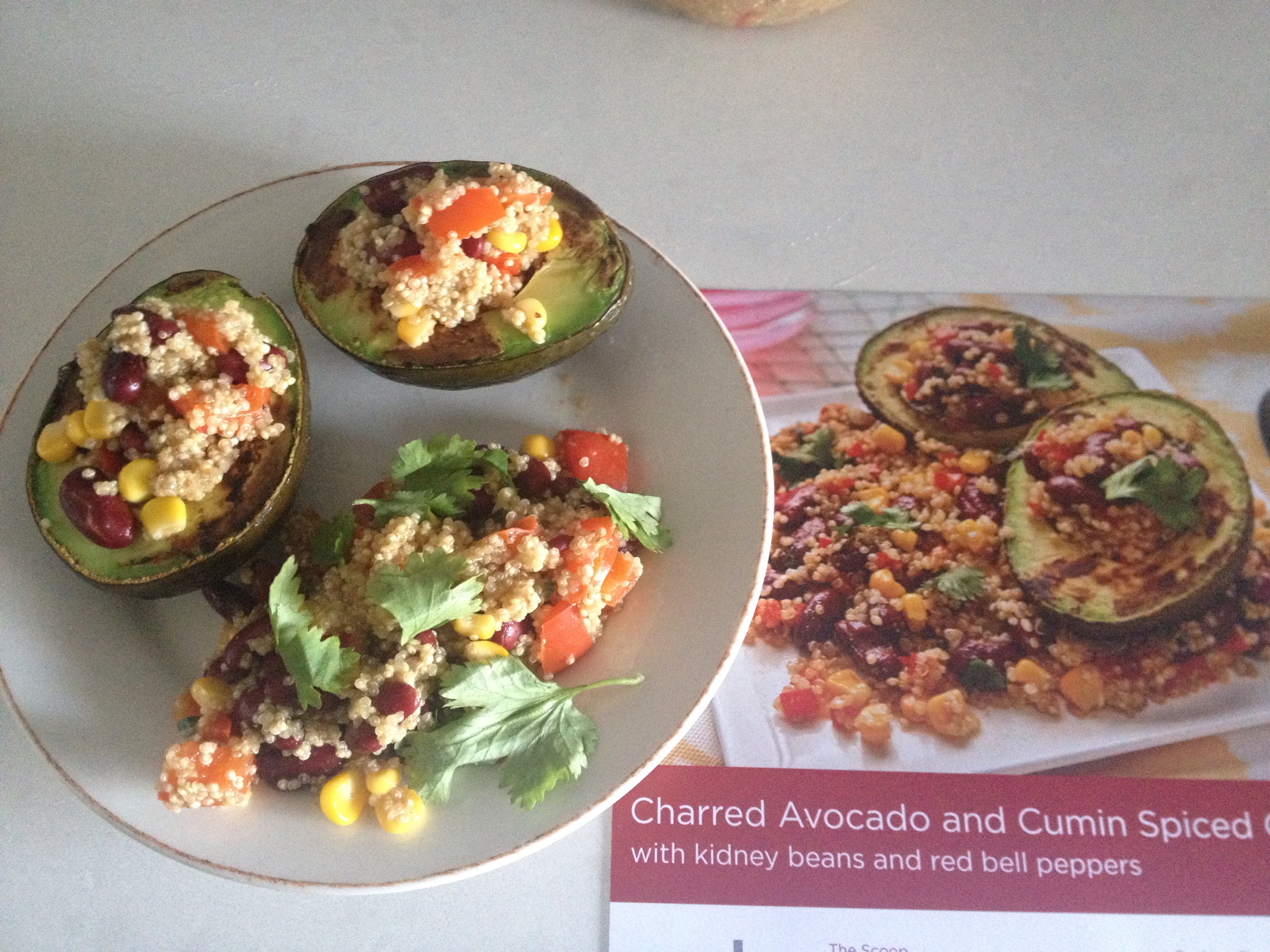 MEAL 1: CHARRED AVOCADO AND CUMIN SPICED QUINOA SALAD with kidney beans and red bell peppers