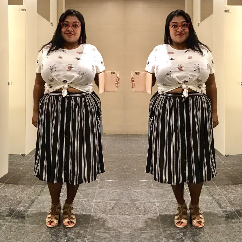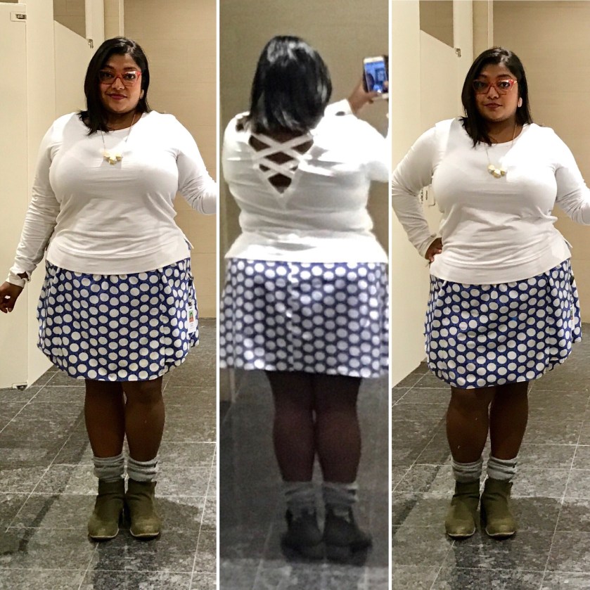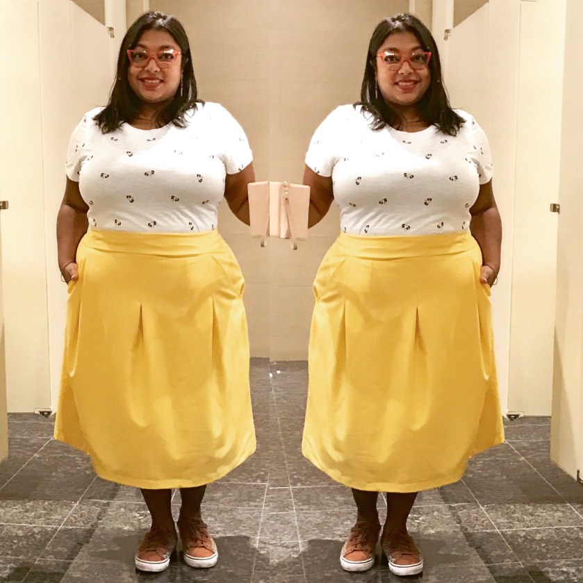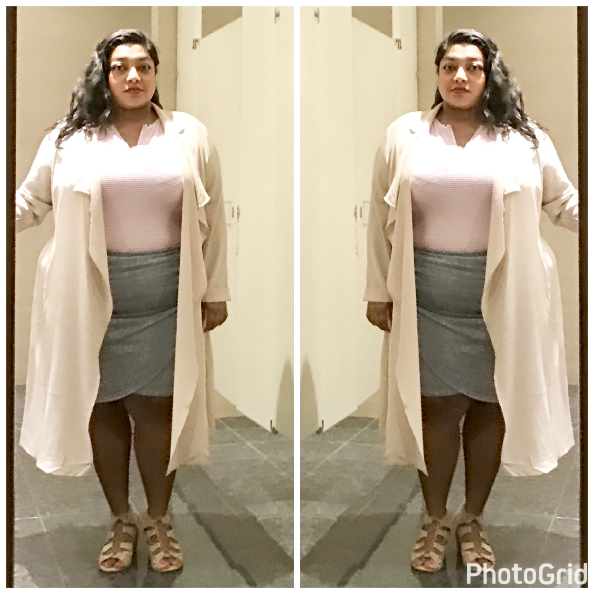 Oooooo! I remember this pic…it was the “travel outfit” on the eve of my trip to New Mexico. Stay tuned for that trip recap blogpost soon! 😉 How I Got The Look: Shoes from Payless; Top & Skirt from Reitmans; Soft trench from F21+