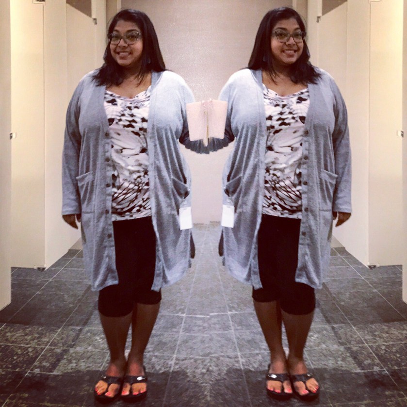 How I Got The Look: Long cardi & Butterfly slouch top from Reitmans; Platform flipflops are Coach
