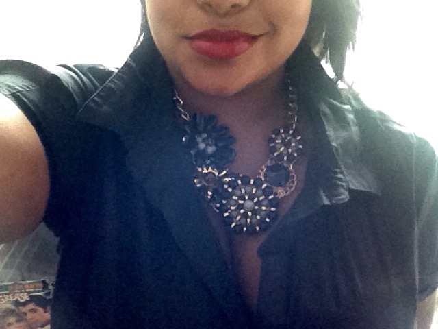 OK… so I took this casual lumberjack plaid and paired it with a leather skirt and a statement necklace with green booties….