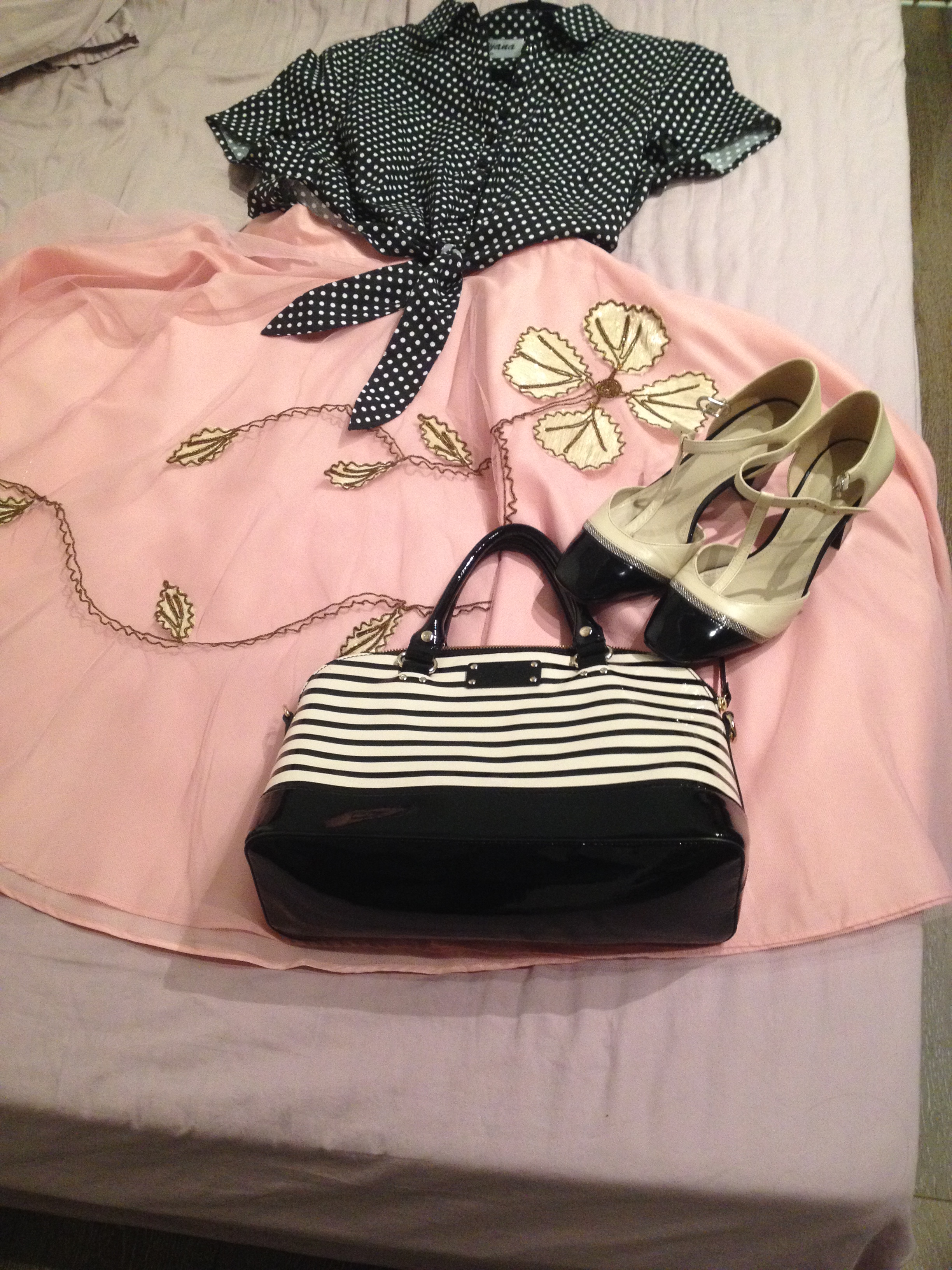 Outfit Deets: Blouse & Skirt, Tatyana Boutique; Shoes, Naturalizer; Purse, Kate Spade; Jewellery set (old)