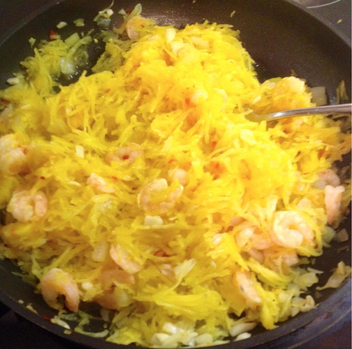 VOILA!!! Fancy sautéed Spaghetti Squash with Shrimp