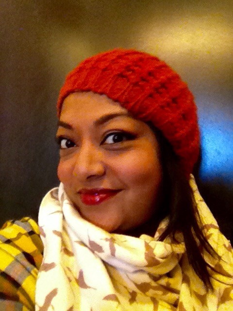 How I Got The Look: My knit burnt orange hat, H&M; Bird circle scarf; Aldo Accessories (click here for more); Jeans, Forever21+; Mustard yellow plaid shirt, Old Navy (click here for more); Gloves, Danier Leather (click here for more); Sunglasses from Ardene; Boots from Payless; Puffer vest, Old Navy (click here and here for more); Cross-body MichaelKors purse
